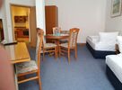 Unsere Ferienappartements sind alle individuell gestaltet und zwischen 38 und 55 m² groß und alle mit Dusche/WC ausgestattet. In den Zimmern erwarten Sie ein Doppelbett mit zwei getrennten Federkernmatratzen mittlerer Härte 90 X 200 cm. Die Ferienappartemnts 22 und 23 sind jeweils für 4 Personen mit einem zweiten Schlafzimmer, welches in Zimmer Nr. 22 separat zugänglich ist. Hier stehen dann noch einmal zwei Einzelbetten (in Zimmer Nr. 22 haben die Betten eine Größe von 90 x 200 cm und in Zimmer Nr. 23 80 x 180 cm). Ein Esstisch, eine Sitzgruppe mit Couch und einem zugehörigen Couchtisch, ein Schrank, TV, Telefon und ebenso ein Kühlschrank machen Ihren Aufenthalt angenehm. Darüberr hinaus gibt es in jedem Ferienappartent eine vollständig ausgestatete Küche mit Vierplattenceranfeld, Backofen, Wasserkocher, Kaffeemaschine, Toaster und einer Auswahl an Geschirr und Besteck. W-Lan ist natürlich auch hier in allen Zimmern verfügbar.
